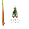 Like tiny wrapped Christmas presents, these small card watercolour-style illustrations are each hand embellished with genuine crystals and a flourish of hand-tied satin ribbons.