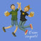 A fun well done card featuring two happy students jumping for joy at their exam results, with the words: