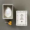 From East of India, a small porcelain oyster token inside a cardboard matchbox. An ideal token gift for someone off on their travels, starting a new job or passing exames etc.